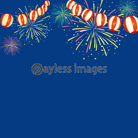 夏祭り 提灯と花火 ストックフォトの定額制ペイレスイメージズ